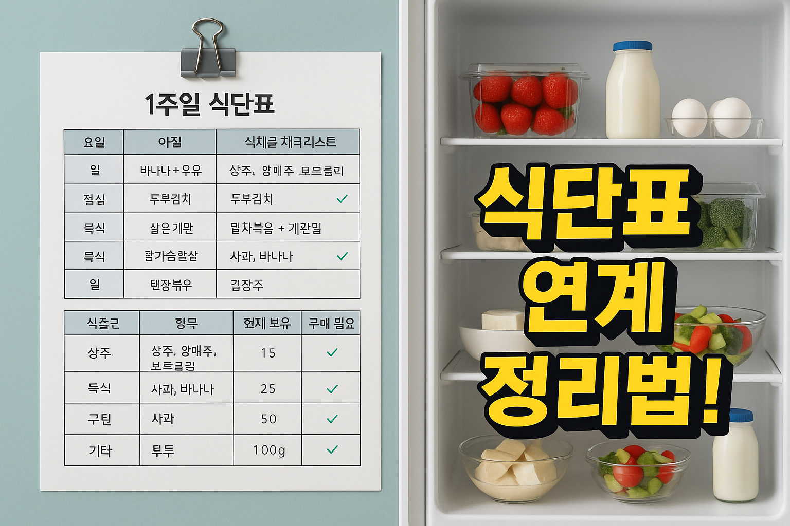 오늘부터 “식단표 → 체크리스트 → 냉장고 정리” 루틴, 시작해보세요!
